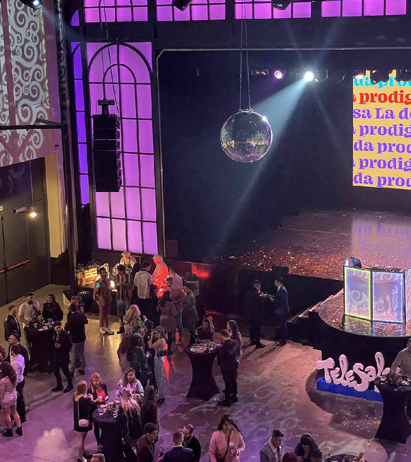 Gracias a la grada retráctil y la altura del techo, pudimos adaptar a la perfección el espacio en función a las necesidades que pedía el evento.